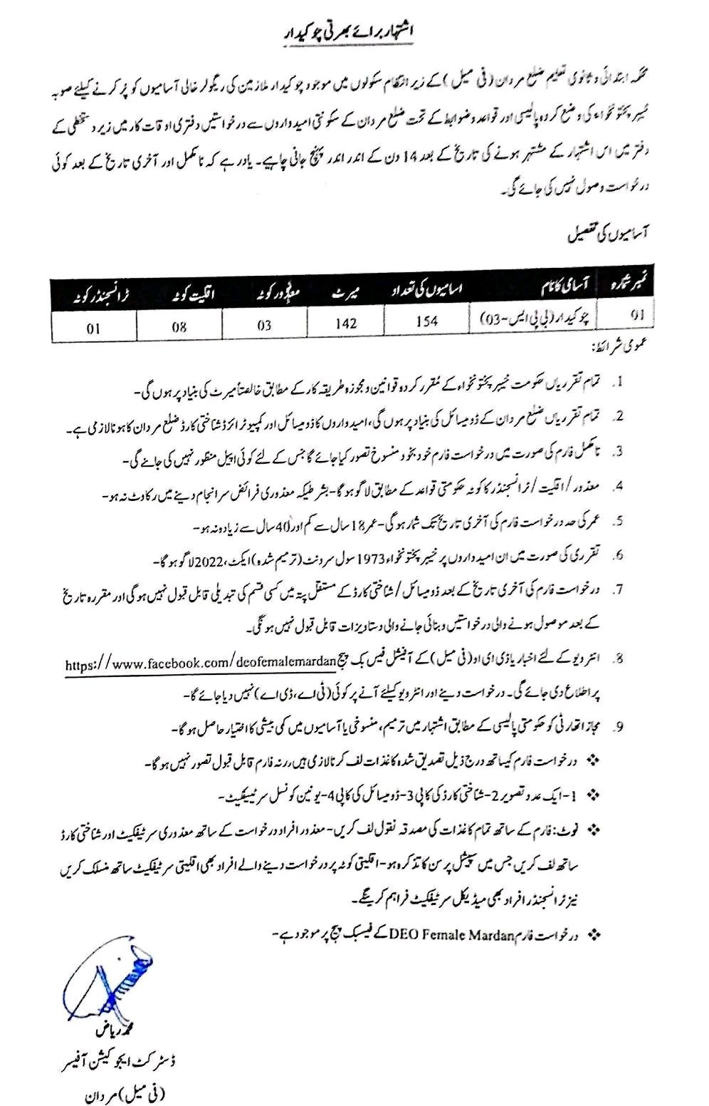 If you meet the criteria and want a secure government job in Mardan, do not miss this chance.